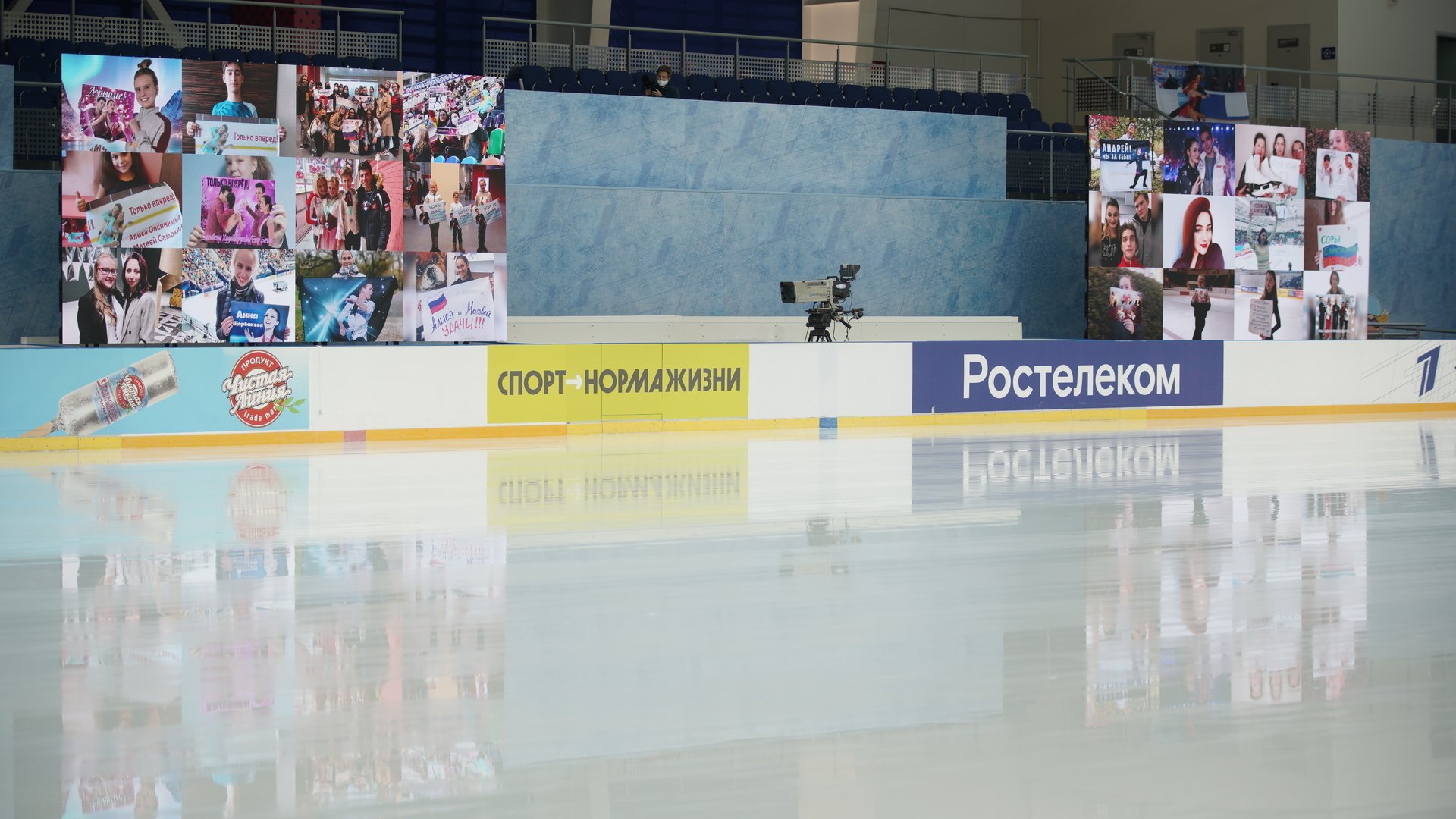 Было обработано около тысячи сообщений, самые яркие попали на четыре экрана, размещенных по периметру катка. На мониторы размером 3х6 метра выводилось по 12 изображений, каждое из них хорошо было видно как со льда, так и в телетрансляции.